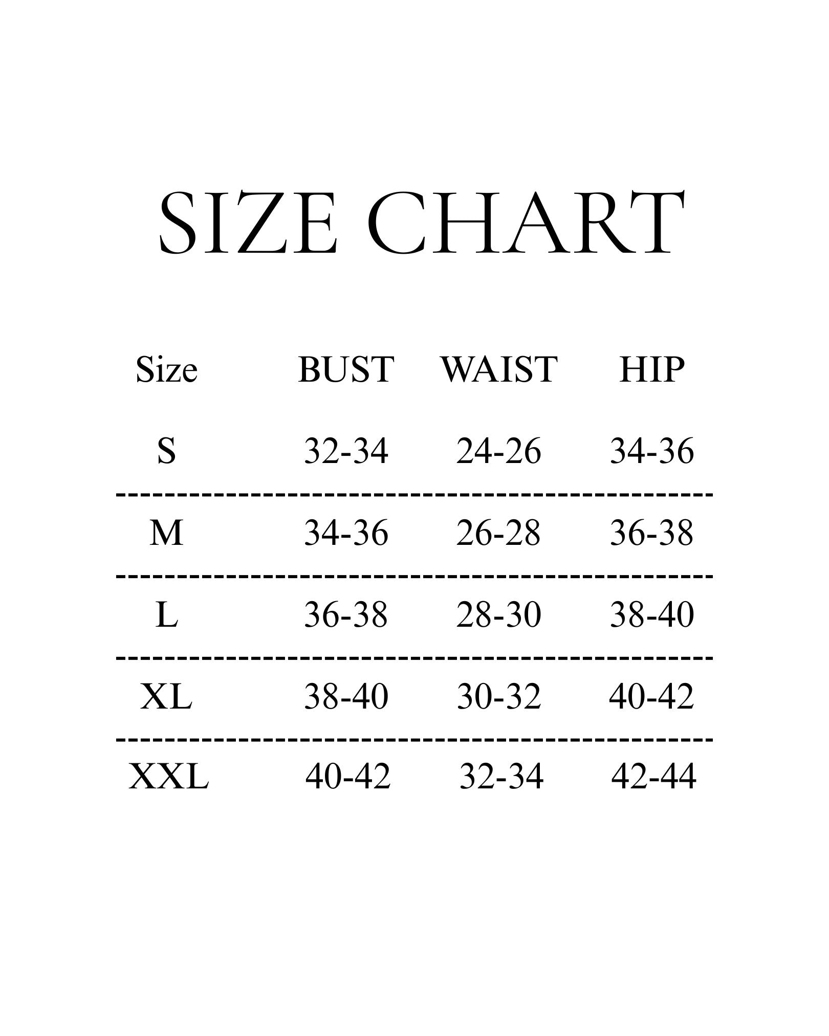 Model is wearing size Medium. Bust: 34" Under bust: 31"